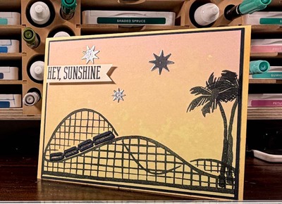F U N Beach Boardwalk stamped on DSP card