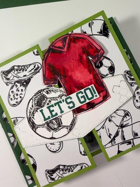 - Thick Basic White –4″ x3 1/4″ for inside panel, plus scraps for Jersey, Ball, sentiments and Die-cut